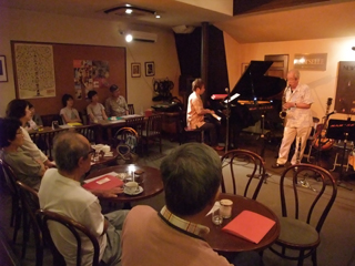 毎回趣向を少しずつ変えて、仏教関係の本を読んで感動した詩を萩田さんに朗読してもらったり、教会で賛美歌を教えている音大出の牧師の奥さんに頼んで天使のような声で歌ってもらったり、その他にも沖縄音楽・シャンソン・ジャズ・クラッシック・ハーブ演奏と、さんざまなミュージシャンと知り合えるのも楽しい。